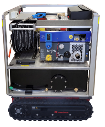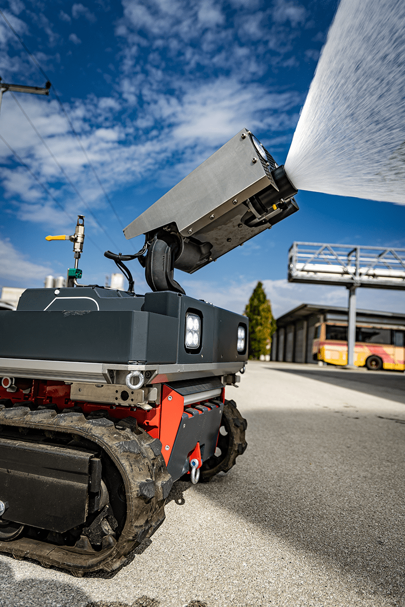 The RTE is a compact, electric-driven firefighting robot that allows crews to remotely suppress fires and perform support tasks in hazardous environments. With a width of just 31.5", it fits through standard doorways and tight spaces. Its electric drive delivers high torque and reliability, with a range of up to 6 miles. Integrated LED lights and acoustic signals ensure visibility in low-light or smoky conditions—keeping your crew safe and your mission moving.